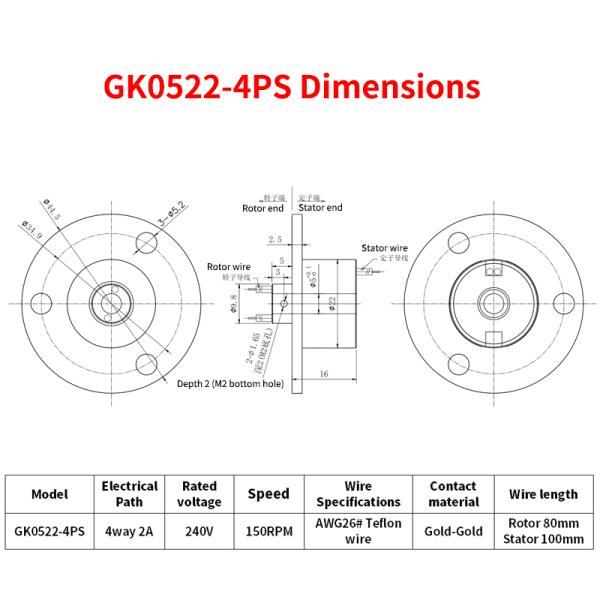 GK0522-4PS hollow electric slip ring Product Dimensions